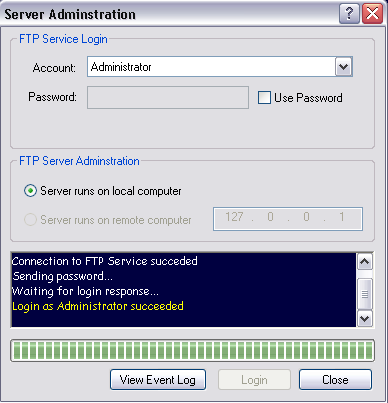 A program indítás után az alábbi képernyő fogad (kép1). Be kell lépned mint Administrator, hogy a beállításokhoz hozzáférj. Ehhez kattints rá a „Login” gombra. Jelszót nem szükséges beírnod, arra csak külön beállítás után lehet szükség (elsősorban akkor, ha nem a saját gépedről szeretnéd adminisztrálni a szervert, hanem pl. máshol vagy és csatlakozol hozzá – távolról)