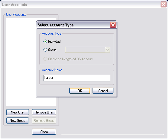 A ablak elsőre üres, mivel egyelőre nincs felhasználónk (kép5). Ehhez kattints a „New User” gombra, majd a felugró ablakban az „Account name” alá írd be a felhasználó nevét (ezzel fog belépni a szerverre) – OK.