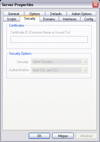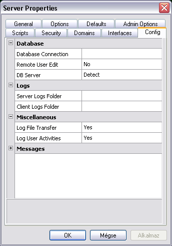 Miután végigmentünk a user hozzáférésének beállításain, nézzük meg a szerverre általános vonatkozó beállításokat. Itt bármit módosítasz, az az egész programra kihat. Menj a menü / setup / server options részhez (kép19).