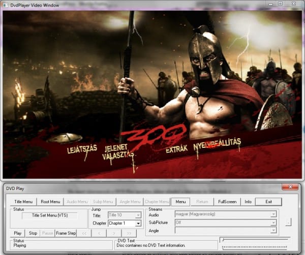 Ha most rányomunk a DVD Play gombra akkor elindul a lejátszás és láthatjuk a videónk 4:3 képarányban jelenik meg, ahogy a tulajdonsága is mutatja.