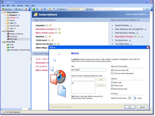 A FeedDemon 2.6-ról pár szót: ez egy asztali RSS olvasó alkalmazás, aminek megvan az az előnye (és ezt más szoftverekben nem találtam meg), hogy bizonyos szavak szerint lehet a híreket szűrni, csoportosítani. Erre már jóideje szükségem volt, hisz a rengeted RSS forrást – még ha időnként is át vizsgáltam és dobáltam ki belőlük – már elég nehéz volt kézben tartani, kinek van ideje arra, hogy 2-3 naponta 1000-1500 hírt átnézzen?