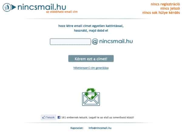 Az alábbi képen látható a nincsmail.hu nyitólapja és hogy milyen egyszerűen is használható a cucc: