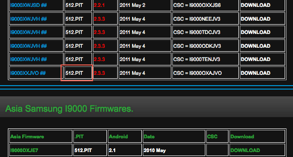 I9000XXJVO ## | 512.PIT | 2.3.3 | 2011 May 4 | CSC = I9000OXAJVO | DOWNLOAD