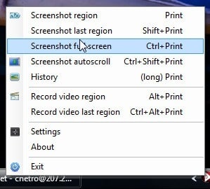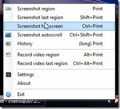 Az első dolog, ami megfogott benne, hogy az indulásnál megkérdezte, hogy telepíteni szeretném-e vagy csak futtatni a programot. Evidens, hogy a hordozható változatot próbáltam ki. A másik jó dolog, hogy a billentyűzeten tálalható PrintScreen –el működik. Ezek után egy kattintás az óra melletti ki ikonra s azonnal látható lesz a menü. Több opció közül választhatunk: régió (rendkívül hasznos), teljes képernyő…
