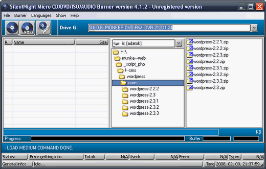 SilentNight Micro CD/DVD/ISO/Audio Burner főablaka