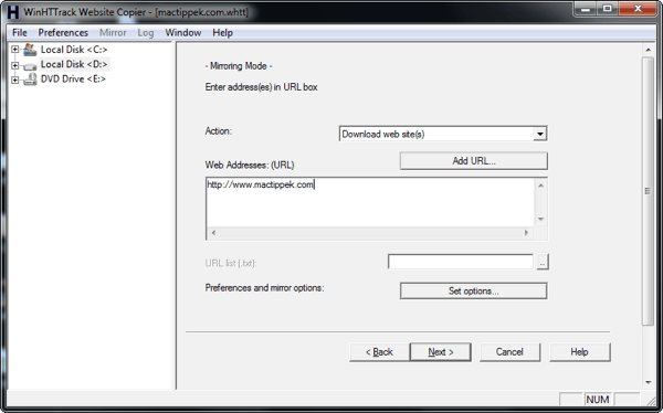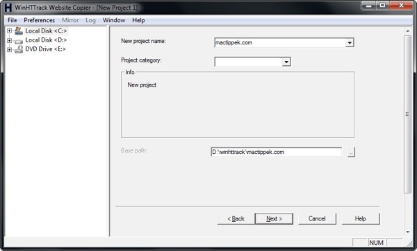 A program használata rendkívül egyszerű. Első lépésként létre kell hozni egy új projektet, ami során meg kell adnod a menteni kívánt honlap URL-ét. Add meg ugyanitt azt is, hogy a gépeden ez a project hova kerüljön mentésre.