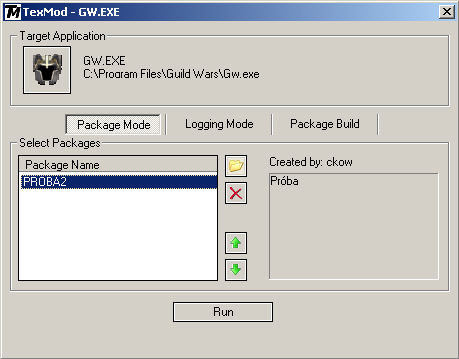 Három része van a TexModnak, egy Package Mode, egy Logging Mode és egy Package Build. Az elsővel tudjuk betölteni a készített modot, a másodikkal tudjuk a TexModon keresztül futtatni a játékot, a harmadikkal pedig elkészíthetjük a modot.