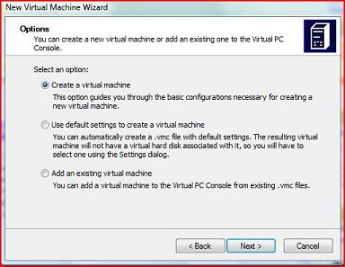 Csak ezután telepítsük fel a Virtual PC programot. El fog indulni egy új virtuális gép varázsló.