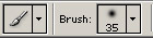 ![]() ![]() | -Készíts egy új Layer-t -A Foreground Color-t állítsd fehérre. -Használd a Elliptical MarqueeTool-t és válassz ki egy olyan kört ami kb. 3px-el kisebb mint az eredeti. -Válaszd ki a 35-ös lágy körvonalú ecsetet.