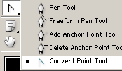 Rosszul van írva! Nem az ellipszis kijelölőt, hanem az ellipszis alakú vektorgrafikus rajzolót kell használni – Ellipse Tool [U]. Mivel csak ez utóbbit lehet utólag módosítani a Convert Point Toollal. Ez természetes, mivel a Marquee nem készít pathot, csak egy kijelölést. Tehát ellipszis eszköz a szem létrehozásakor.