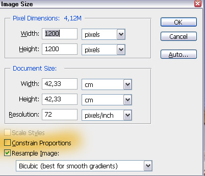 Itt előszöris a ki kell kapcsolni a Constrain Proportions-t, majd egy egyenlő értéket kell megadni a magasságnak (Height) és a szélességnek (Width) egyaránt. lehetőleg a magasságot növeljük akkora értékre, mint amekkora a szélesség.