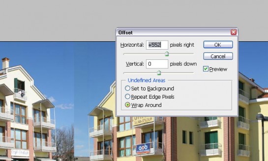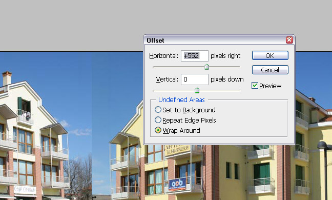 Itt csak a Horizontal értékét állítjuk át, úgy, hogy a kép eredeti széle valahol a kép felénél legyen.