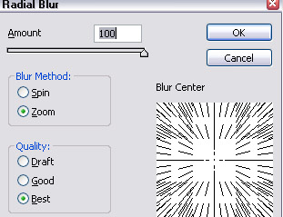 A legalsó layerre kattintunk, majd Filter->Blur->Radial Blur