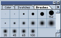6.jpg (5413 bytes)ecset. ehez tartozik a brush eszköztár, ahol kiválaszthatjuk, mekkora ecsettel akarunk festeni.
