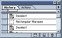 17.jpg (16607 bytes) History: ez jó dolog, mutatja, hogy sorban milyen parancsokat végeztünk el az aktuális doksin, és ha ráklikkelünk az egyes munkafolyamatokra, a képünk visszatér abba az állapotba. magyarul: visszavonás, csak szemléletesen. ha valamit elrontottunk, itt lehet visszaállítani a még el nem cseszett állapotot.