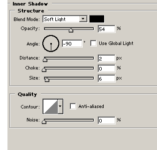Alkalmazd az Inner Shadow (Layer > Layer Style > Inner Shadow) layer stílust a pirula layer-re a képen lévő beállításokkal.