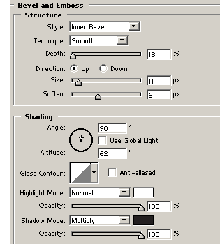 Szintén alkalmazd a Bevel and Emboss (Layer > Layer Style > Bevel and Emboss) layer stílust a pirula layer-re ahogy a kép mutatja.