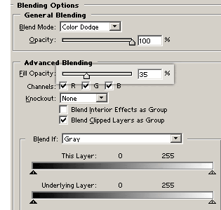 Állítsd a layer Fill Opacity értékét 35%-ra (Layer > Layer Style > Blending Options). Szüntesd meg a kiválasztást (Select > Deselect).