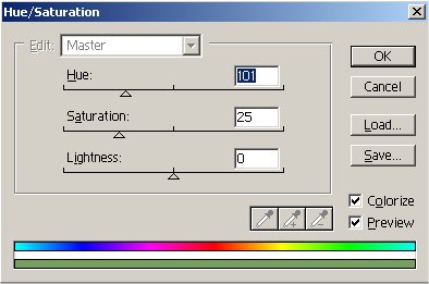6.) Gyakorlatilag kész is vagyunk, csupán még a színeket kell megfordítanunk, Ctrl+I bill. kombinációval, vagy Image > Adjustments > Invert, és színezni az Image > Adjustments > Hue / Saturation menüpontban, úgy, hogy a Colorize módot bekapcsoljuk.