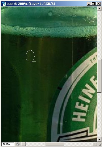 2.) Fogjuk meg az [Elliptical Marquee Tool]-t és kicsit kinagyítva a képet rajzoljunk egy ovális kijelölést függőleges irányban.
