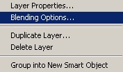 6.) Kattintsunk jobb gombbal az új rétegre és válasszuk a [Blending Options…] menüpontot, majd állítsuk be a következőket (a kép fényeinek megfelelően lehet természetesen változtatni a beállításokat: