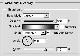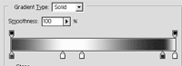 Most menj a GRADIENT OVERLAY-re és állítsd be ahogy a képen látható. A gradient mellett látható színátmenetet állítsd be ahogy ahogy a lentebbi kis képen is látható, a fekete és a fehér szín használatával megcsinálható. Ahhoz hogy a kis ablakot megkapd, a nagyobbik képen látható színátmenetre kattints rá duplán.