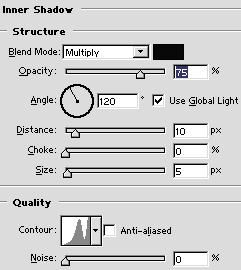 Most az INNER SHADOW értékeit állítsd be a képen látható módon.