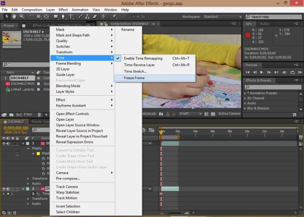 Az alsó rétegen jobb egérgomb Time/Freeze Frame , (idő/képkocka rögzítés).
