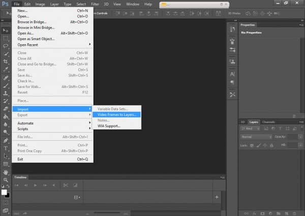 Importáld be a maszkolt videót a Photoshop – ba, File/Import/Video Frame to Layers (fájl/importálás/videó képkockák rétegenként).