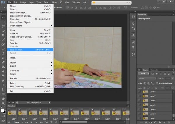 Húsz-harminc képkocka bőven elég lesz, a többit nyugodtan töröld, exportáláshoz válaszd a File/ Save for Web (fájl/mentés webre) opciót.