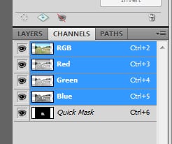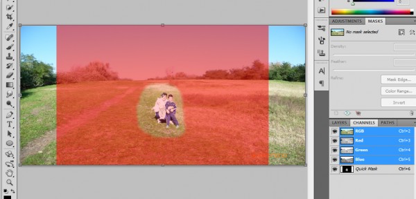Következő lépés váltsunk át a Channels fülön a Quick Mask kijelölésről az RGB – re.
