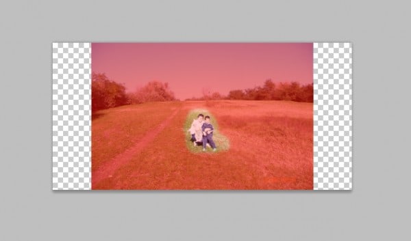 Ha most széthúzzuk a képet a vászon széléig akkor a védelem miatt, Protect Quick Mask, a család nem fog torzulni, miközben a kép nyúlik.