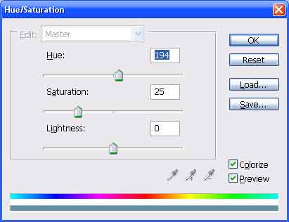 Nyisd meg a Hue/Saruration ablakot (Ctrl+U). Állítsd be a következő értékeket. Figyelj arra, hogy a Colorize ki legyen pipálva.