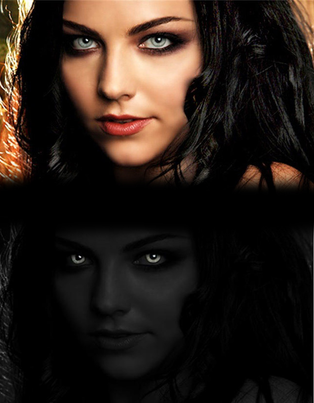 Amy Lee képét fogjuk használni ebben a tutorialban, egy pici vámpíros hatást adunk a hölgynek. Lehetőleg te is világos szemű alanyt válasz ennek a hatásnak az eléréséhez, mert azon jobban fog érvényesülni. Ha mégis sötét szemű az alakod akkor előbb színezd át a szemét világosra…