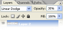 8. A keverésimódot (blend mode) állítsd Linear Dodge-ra az áttetszőséget (opacity-t) 35%-ra