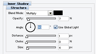 3. Menj az Inner Shadow panelre és használd ezeket a beállításokat: