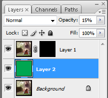 Ezt a réteget fessük be egy színnel, majd tegyük az Opacityt 15%-ra.