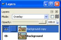 2.) Duplázzuk meg a jelenlegi réteget (Réteg -> Réteg kétszerezése), és változtassuk meg az új réteg rétegmódját Gyenge Fényre/Rávetítésre (mindegy melyiket választjuk).