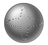 Az „elliptical marquee tool” segítségével rajzolj egy ovális kiválasztást a képen látható módon (mondjuk elsőre vertikálisan), majd a SHIFT gombot nyomva tartva ezt ismételd meg horizontálisan is. Kapsz egy ilyen csillag alakú kiválasztott területet.