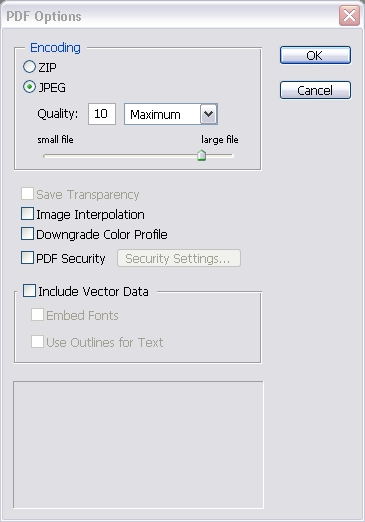 Az Encoding a kódolás. Lehet ZIP, vagy JPEG. A JPEG minõségét a JPG mentésnél olvasottak szerint tudod beállítani.