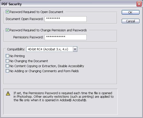 Password Required to Change Permission and Passwords kapcsolóval meg tudod adni a jelszót az engedélyek és a jelszó változtatásához. A jelszót a Permission Passwordbe tudod beírni.