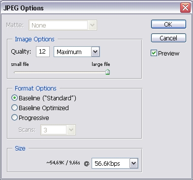 Image Options: A kép beállításoknál mindegyikkel a kép minõségét lehet beállítani. A Qualitynál a 12 a legnagyobb vagy a legördülõ listában a Maximum. Természetesen minél jobb minõségû a kép annál nagyobb a mérete.