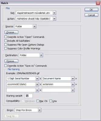 Batch: Ez egy mappányi képre hajtja végre az actions-nél felvett mûveletsort.