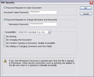 A PDF Security bekapcsolásával elérhetõ egy új ablak, amit a mellete levõ Security Settings gombbal tudsz elérni. Itt látod: