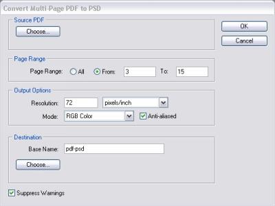 A Page Range, hogy melyik oldalt szeretnéd PSD-be. Az All a mindet. Én a képen viszont bekapcsoltam a From-ot a 3.-ik képtõl a 15.-ig ami megadott képtõl megadott képig csinálja meg a PSD File-t.