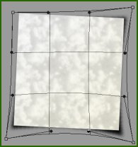 Most jön a fontos lépés. Használjuk a szerkesztés/ átalakítás/ hajlítás parancsot (edit/transform/warp). Egy 4×4-es négyzethálót kapunk. 3 sarkot húzzunk kijjebb egy kicsit, a többi pontot pedig kicsit a kép alá. A cél hogy csak a 3 saroknál legyen árnyék, mintha felkunkorodnának. A réteg átlátszóságot 60-ra tegyük, mert 100-on az árnyék túlságosan sötét lenne.