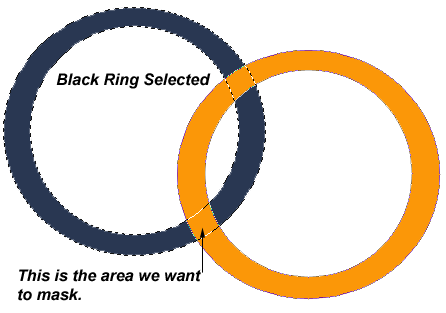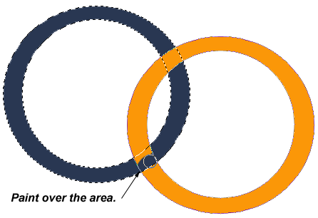 9. Utána válaszd a ‘Brush tool‘-t, és fesd be feketére azt a részt, ahol a két gyűrű összeér.