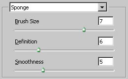 A hold. Kérj egy új layer-t. Most jelöld ki a hold körvonalát az Elliptical Marquee Tool (hotkey:M) segítségével, célszerű a kép fenti részébe helyezni. (Ha tökéletes kört szeretnél rajzolni akkor a kijelölés közben tartsd nyomva a shift billentyűt). Ha megvagy az előtér (Foreground) színét állítsd #F0FAFF –re. És most töltsd fel vele a kijelölt területet. Majd a következő szűrőt alkalmazod: Filter > Artistic > Sponge. Az alábbi beállításokkal: