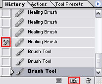 Ha belementünk a test részeibe is, akkor sincs gond, a History panelen állítsuk be a History Tool számára, hogy melyik előző állapotot vegye alapul (7.ábra), majd a History Brush Toolal