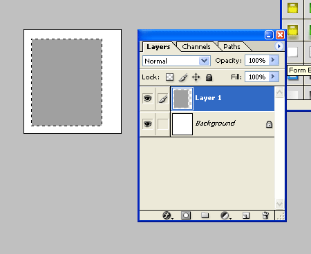 Első lépésként csináljunk egy új layert (Ctrl+Shift+N). Fogjuk a Rectagular Marquee Tool-t és csináljunk egy olyan 3:4 oldalarányú álló téglalapot, majd a Fill Tool-lal töltsük ki #a0a0a0 színnel.